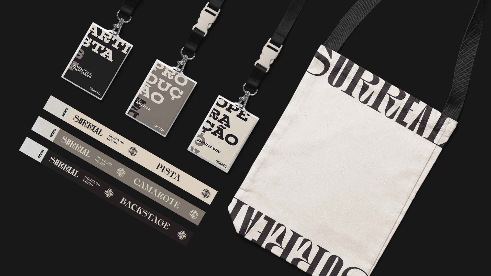 Surreal is a music park located in Camboriú – Santa Catarina. The whole place is inspired in the surrealist movement and the answer for the briefing couldn't be more clear. I decided to pick a font family, but not a regular one. A surrealist one. Mixing fonts from the same family a visual identity with many variations, creating unexpected compositions.